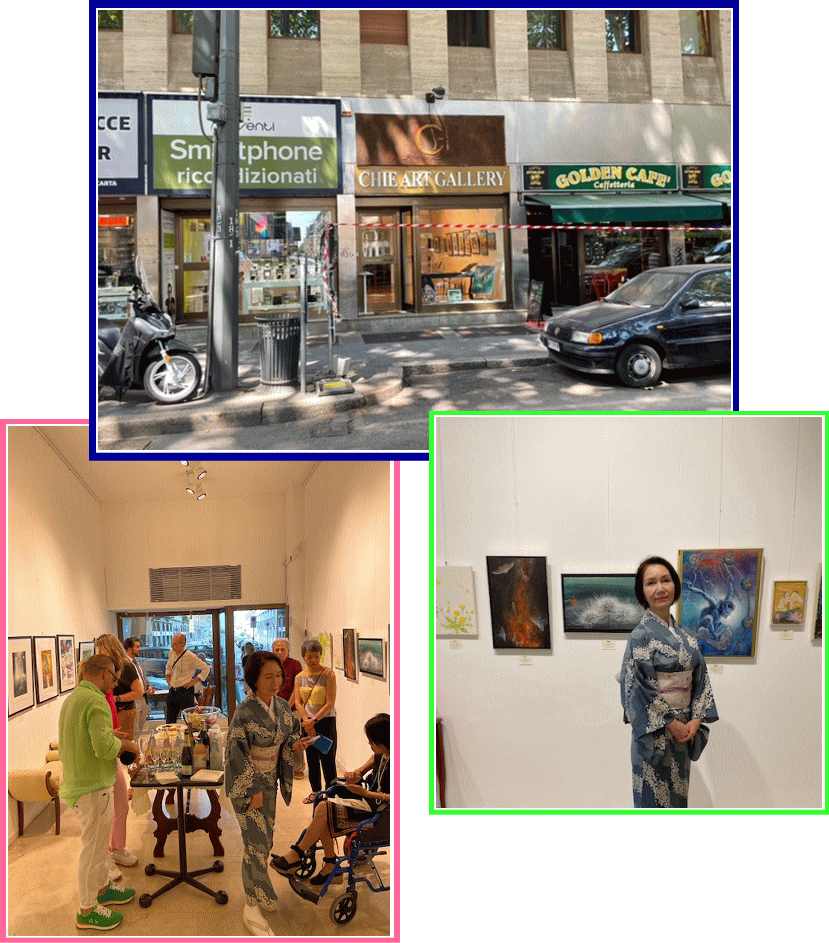 2022年6月27日~イタリア ミラノにありますchieartgalley にて 日本人作家のグループ展を開催いたしました。 オープニングパーティにて単衣の小紋と半幅帯を持参して着てみました。 ギャラリーには鏡もない条件でしたが不安なく着ることができました。 これも日頃のW先生の丁寧なご指導の賜物と感謝申し上げます。 これからも引き続き宜しくお願い致します …着物生活を楽しめるようになりそうです。(M.Nさん)