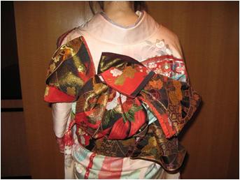 、さらに手先で万葉ヒダをとり、羽根の美しさを強調して、帯締めを帯の上で抑え