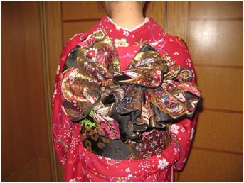 ドレープの美しい華やかさです。柄じまいを左脇にして後板をいれ、タレを左上へ