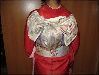 ドレープヒダをとって、花太鼓は右から左へ回転、手先に5つ山ヒダをとり、