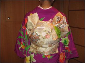 お太鼓の代表的な結び方で、基本形です。美しくバランスよく大きく羽根を広げて