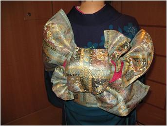 帯の柄を全て表してバランス良く美しく整える。手先の柄のところで箱ヒダを作り