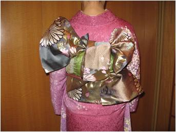 後板を入れ、二巻きしてタレを上に一結び、タレを右肩幅計り、残りを箱ヒダに、