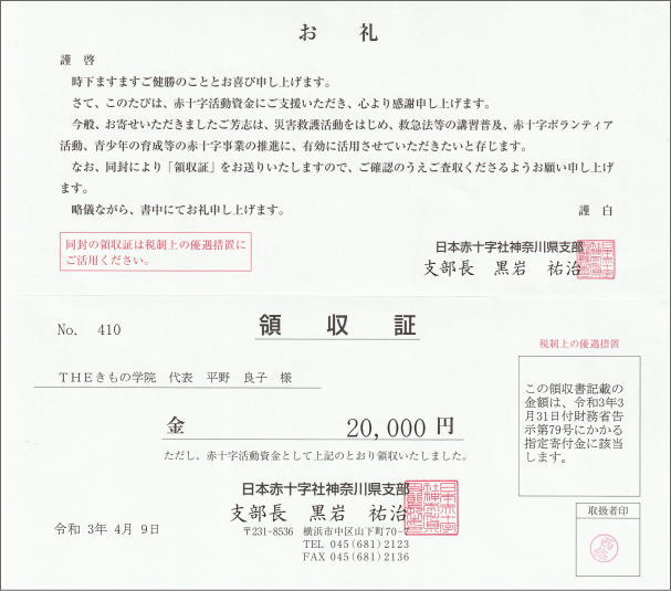 2021年3月に行われました春のイベント『楽市楽座』の売上金の一部を寄付いたしました。